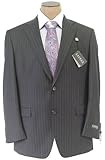 Ralph Lauren Mens 2 Button Flat Front Charcoal Gray Stripe Wool Suit |
