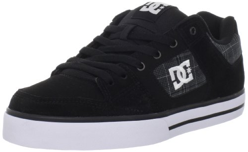 You'll get a Pure rush of adrenaline when busting out your tricks in these versatile skate shoes from DC. Available in a number of over the top colors and prints, these fly kicks come in solid leather, action leather, or soft suede materials. Other features include the Pure's perforated round toe, side grommets, and a padded collar and tongue. Fabric lining and a soft footbed provides interior cushioning and sure footing. The DGT sticky rubber outsole with trademark DC "pill" pattern is grippy and responsive as well..../ DC Men's Pure XE Skate Shoe,Black/Black Plaid,13 M US / Dress Sales